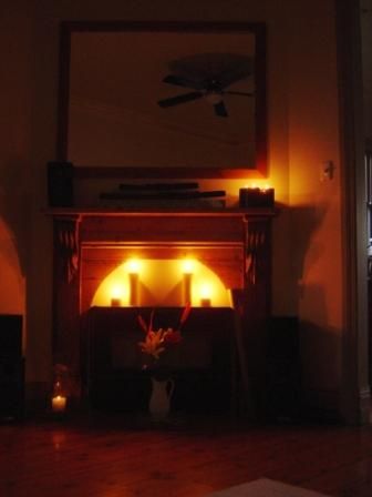 Our mantelpiece is a lovely feature, with Orlando’s Chinese swords, a big mirror above and lots of candles in the evening.