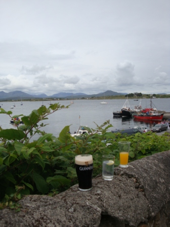At Roundstone on a sunny summer Sunday, the world and his wife are out. There is a hooker race (traditional Irish sailing boats, not women of dodgy repute), a pony show and a craft fair on. People sit outside the many seafood restaurants and bars, putting the world to rights as only the Irish can. I fill up with petrol outside an old-fashioned grocery store with two ancient petrol pumps outside. We buy a round in McDowd’s pub and stroll across the road to sit on the harbour wall and watch the boats assemble. None of your plastic glasses here: you are expected to take good care of your pint if you wander outside.