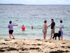 On Gurteen Strand nearby we find a sheltered spot and the hardier specimens in the family chance a dip in the sea. I hold their towels.