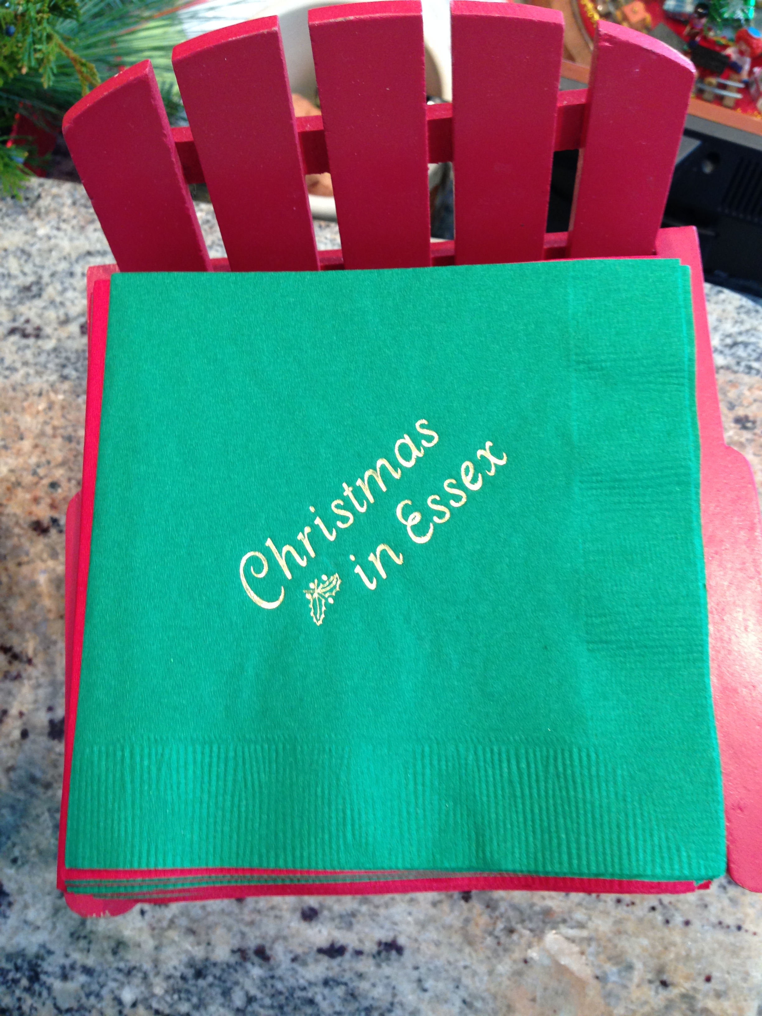 We meet up with Mike’s two moms (Real Mom Peggy and Step-Mom Sue) at Peggy’s sprawling New England home on the water’s edge in Essex itself. Like the rest of the village, the house and garden are picture-perfect under at least a foot of snow. The charming but often out of place American Christmas decorations I have seen in many European houses seem perfect in this home: a huge tree in the living room is the centrepiece and every wall and table surface has a wreath or a ribbon attached. The kitchen is well stocked with every sandwich filling known to man (handy for those of us who are feeling a little worse for wear after the school reunion of the night before), and Peggy does a good line in chilled non-alcoholic drinks to help with rehydration. Needless to say, every plate, cup and glass is Christmas-themed without being vulgar. The red-and-green “Christmas in Essex” napkins seem appealing in this house, whilst I know at home they would just look ironic. I still want some, and Sue quietly tells me the name of the shop in town where I can stock up.