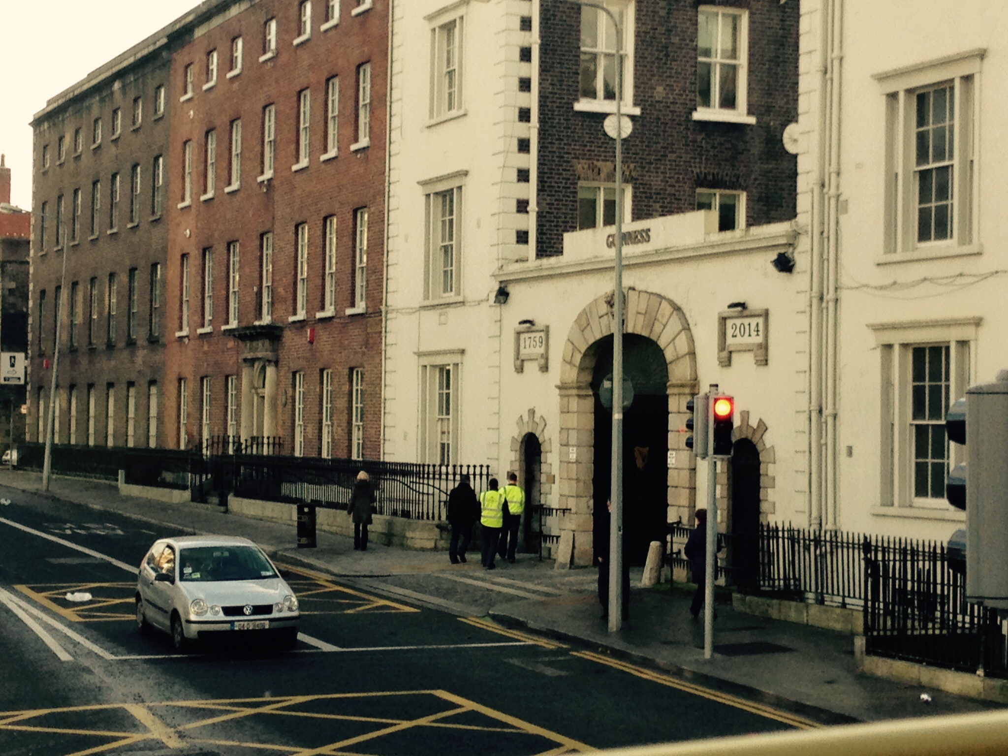 Dame Street is heaving with traffic and people. Trinity College is surprisingly bare of Christmas lights but the big old Bank of Ireland is looking great with a huge lit-up tree and plenty of Christmas garlands.