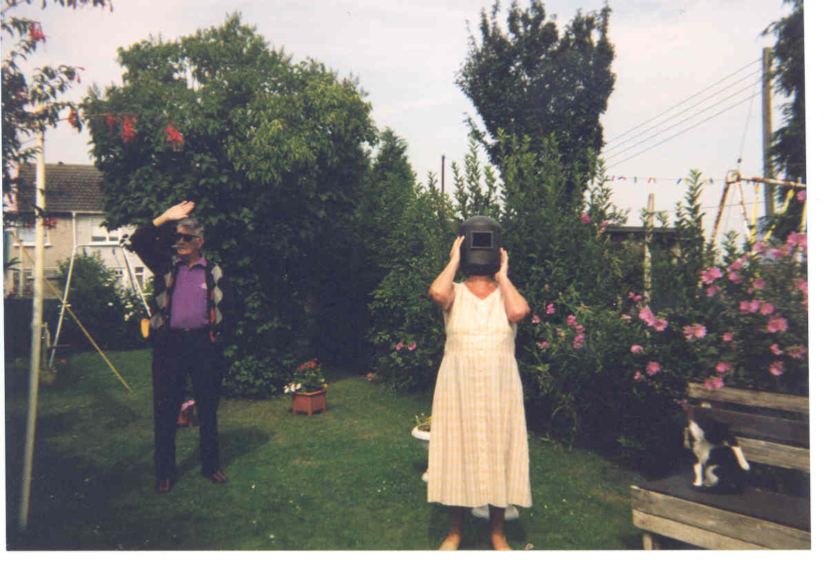 It was a beautiful summer’s day, with the flowers bursting from the ground and the birds singing from every tree. I was looking every inch the professional woman-about-town in my cream Chanel-style bouclé suit and Executive Heels. We stood in the back garden with Daddy’s welding mask and waited. We would not have been aware that the eclipse had even started if it had not been for that welding mask.